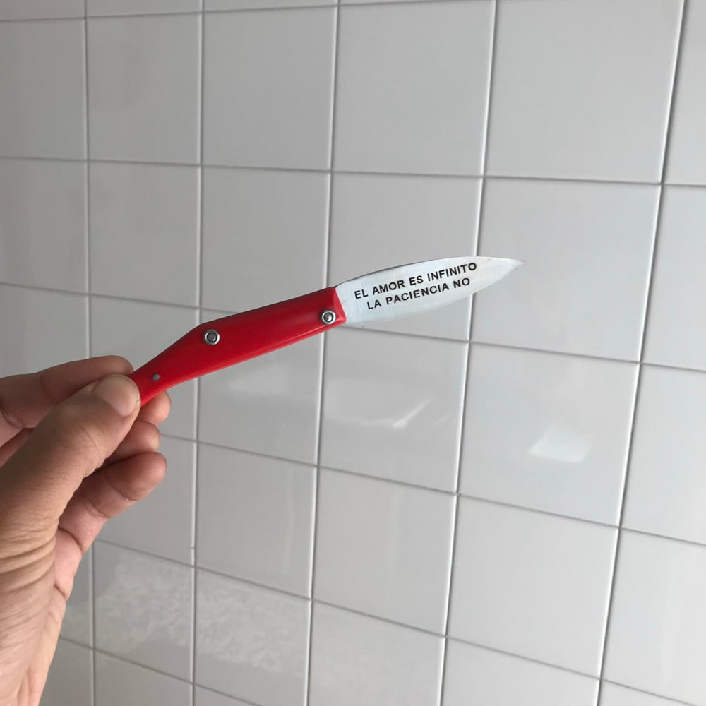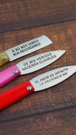 Navaja hoja de laurel de 7cm + poster A3 (con informarción en el reverso) (os dejo la foto que saldrá en el poster, porque estoy de viaje y aún no lo he hecho, ni fotos bien a las navajas, pero eso)