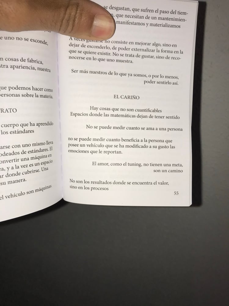 donde se encuentra la obra de teatro “TUNNING” - un texto de la poeta Chus Pato- y una colección de pensamientos alrededor del tuning,